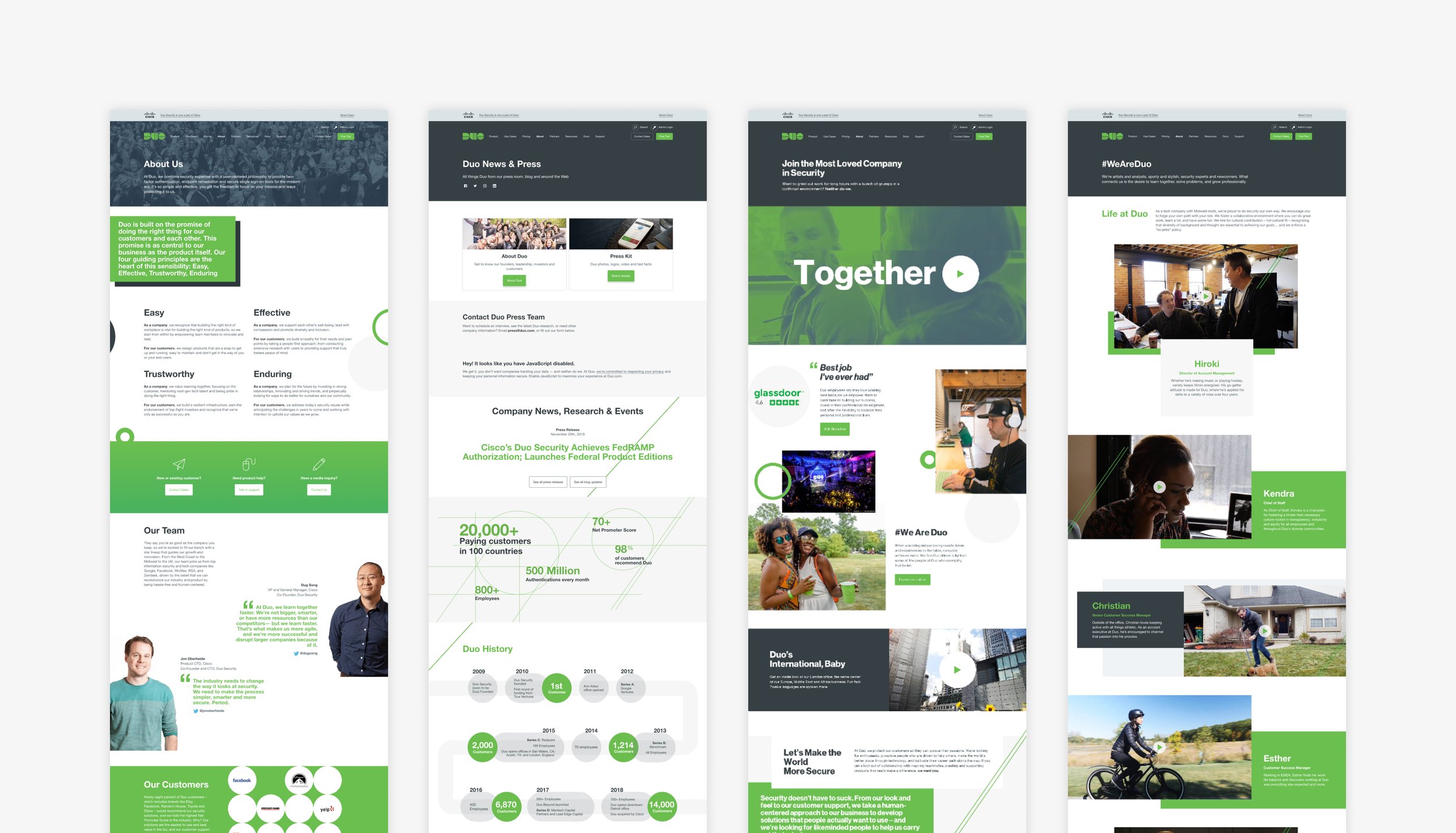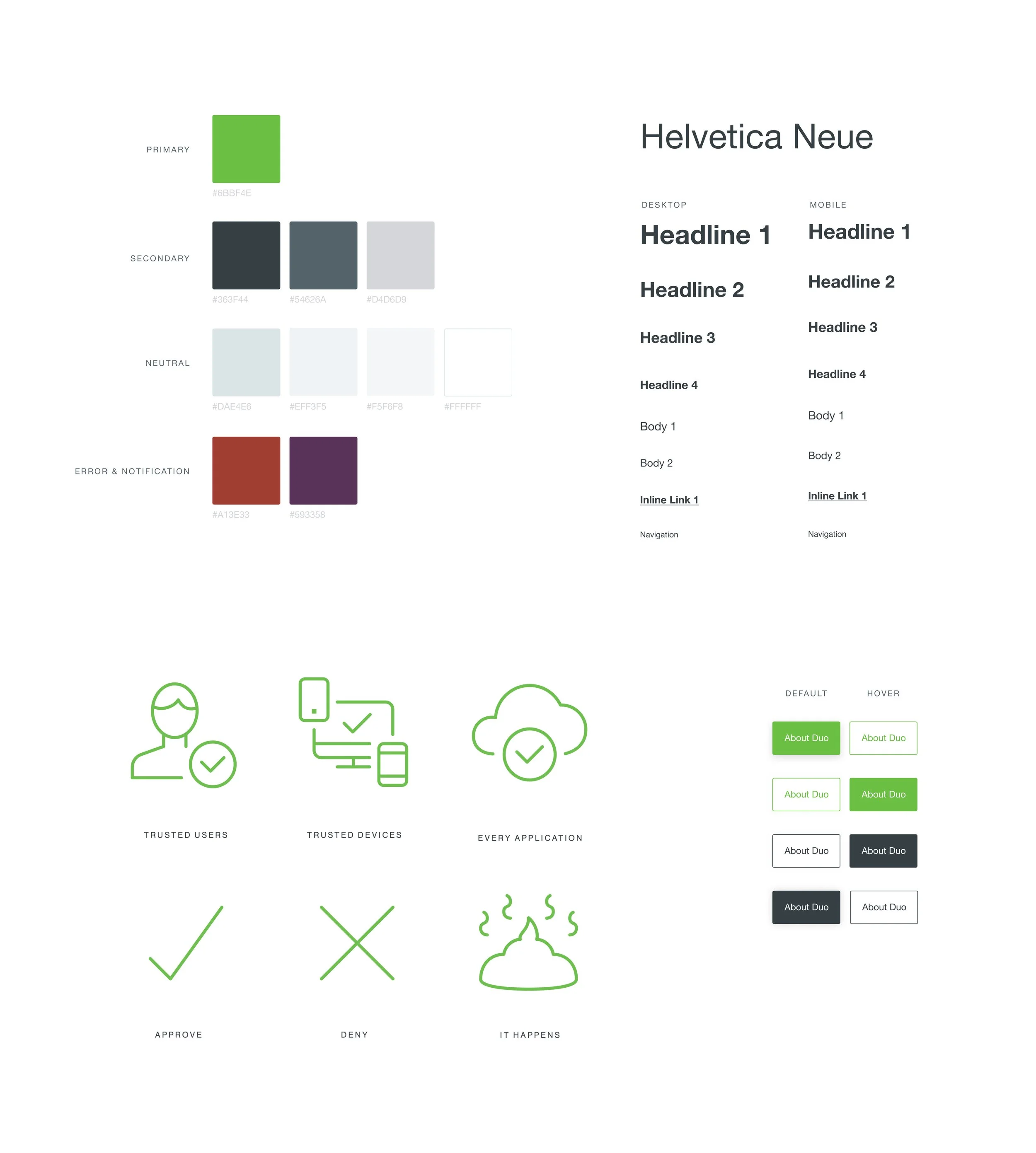 The goal was to develop a distinctive and memorable visual identity that signifies Duo Security’s commitment to trust and security. In crafting the website’s style guide, I chose a color palette and typography that reflect Duo Security’s core values of reliability, innovation, and trust, resulting in a cohesive brand identity that aligns with their mission and resonates with their audience.